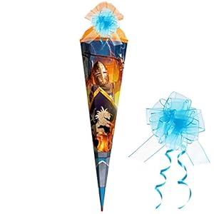 10 Stück Schultüten – Ritter & Ritterburg – 50 cm – rund – incl. Schleife – mit Tüllabschluß – Zuckertüte – mit/ohne…