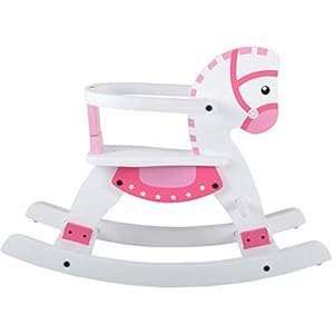 Bandits & Angels Schaukelpferd weiß rosa mit abnehmbarem Steigbügel ab 1 Jahr – Sitzhöhe 28 cm – Schaukelpferd aus Holz – für Jungen und Mädchen – Schaukeltier