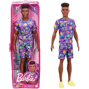Barbie GRB87 – Ken Fashionistas Puppe mit lila Oberteil und Kurze Hose, Spielzeug für Kinder von 3 bis 8 Jahren