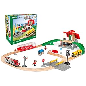 BRIO World 33989 Großes City Bahnhof Set – Umfangreiches Holzeisenbahn-Set mit Umsteigebahnhof – Empfohlen ab 3 Jahren