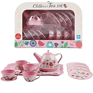 deAO 14 teiliges Tee-Service mit Tragetasche, in den Farben rosa