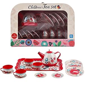 deAO 14 teiliges Tee-Service mit Tragetasche, in den Farben rot
