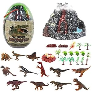 deAO 30 Stück Dinosaurier Realistische Figuren Spielset mit Dino Ei Tragetasche, Zubehör und Vulkan mit Licht-, Sound…