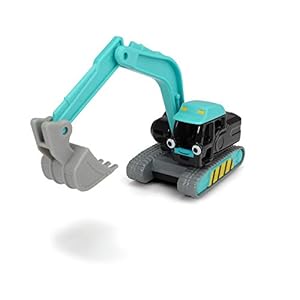 Dickie Toys 203131005 Bob der Baumeister Stretch Spielzeugauto mit Freilauf und beweglichen Teilen, 1:64, Türkis, 7 cm