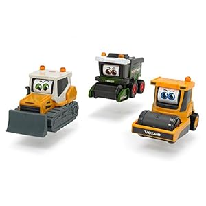 Dickie Toys Happy Rolling Eyes, Fahrzeug mit beweglichen Augen für Kleinkinder, Fendt Mähdrescher, Volvo Walze, Liebherr Bulldozer, 3 versch. Modelle, 16 cm