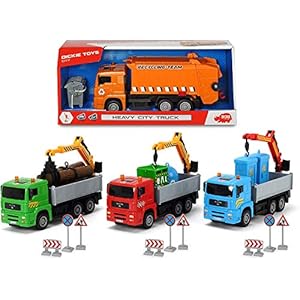 Dickie Toys 203744003 Heavy City Truck, Man LKW, Spielzeuglaster mit Friktion, inkl. Zubehör, bewegliche Teile, 20 cm, 4…