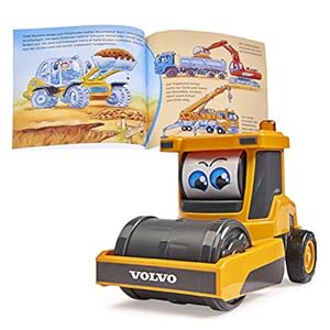 Dickie Toys 203812011 Was ist Was-Baustelle, Volvo Walze mit Freilauf, drehende Augen, inkl. Was ist Was Buch, farbecht…