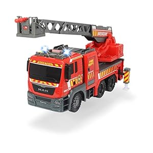 Dickie Toys MAN Feuerwehrauto mit ausziehbarer Leiter, Spielzeugfeuerwehr, ausziehbare Drehleiter, Licht & Sound, inkl. Batterien, 54 cm