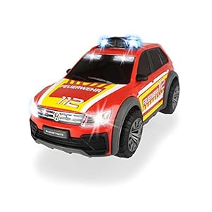 Dickie Toys 203714016 VW Tiguan R-Line Fire Car, Auto, Feuerwehr Einsatzfahrzeug, SUV, Blaulicht & Sound, inkl. Batterien, 25 cm, für Kinder ab 3 Jahren, rot
