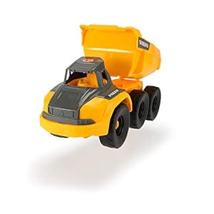 Dickie Toys Volvo Muldenkipper, Spielzeug Kipplaster mit Freilauf, bewegliche Gelenkachse hinter Führerhaus, bewegliche Ladefläche, offene Kabine, 26 cm, gelb/grau
