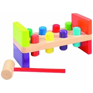Eichhorn 100001868 – Holz-Hammerbank, 10-teilig, 22x11x10 cm – Klopfbank mit 8 Klopfstiften und Hammer