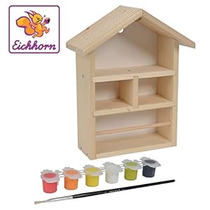Eichhorn 100004583 Outdoor-100004583-Käferhaus aus Holz, zum Zusammenbauen und Bemalen, inkl. Pinsel und Farben…