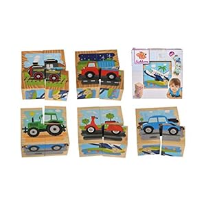 Eichhorn 100005482 – Bilderwürfel, 4 Bausteine mit 6 Fahrzeugmotiven, 4-tlg., 9 x 9 x 4,5 cm, Kiefernholz