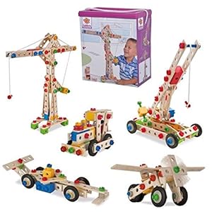 Eichhorn Constructor Kran, vielseitiges Holzspielzeug, 170 Bauteile, 5 Verschiedene Konstruktionen, für Kinder ab 6 Jahren