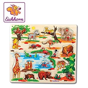Eichhorn 100005454 – Plug-In-Puzzle 40x35cm mit 21-23 Plug-In-Teilen, Motive: Safari, Bauernhof, Verkehr, Lieferumfang 1 Stück, FSC 100% zertifiziertes Linden-Sperrholz, Sortierte Modelle