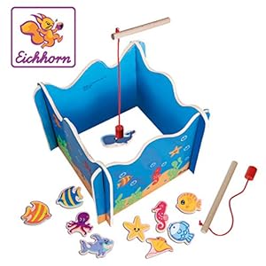 Eichhorn 100002089 – Angelspiel mit zwei Angeln, Holzspielzeug, Geschicklichkeit, ab 3 Jahren, 16 teilig