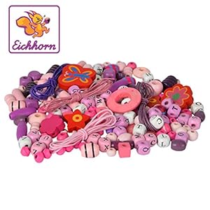 Eichhorn 100003425 – Holzperlen-Set Buchstaben, ca. 190-tlg., bunt, versch. Farben und Formen, inkl. Schnüren und…