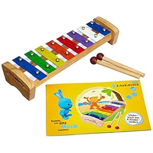 Eichhorn Kikaninchen 109467056 – Holz-Xylophon, 28 x 11 cm, Tonleiter mit 8 Noten, inklusive Liederbuch