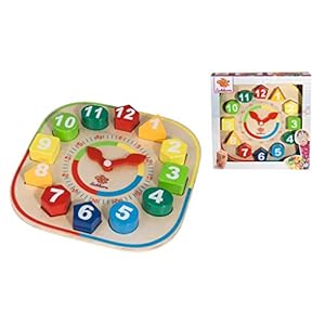 Eichhorn 100003449 Lernuhr mit Steckteilen Uhrzeit lernen für Kinder, 12 Ziffern-Bauklötze, mit Aufstellhilfe, bunt, aus…