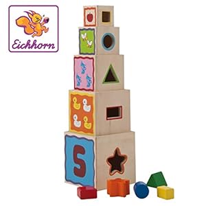 Eichhorn 100002085 – Steckwürfel-Steckturm – 10 teilig – 5 Würfel zum Stapeln – mit 5 Steckteilen – 47cm