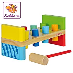 Eichhorn 100002221 – Bunte Klopfbank, enthält: Hammer, 8x Klopfstifte, 10×23,5x11cm, 10-tlg., Kiefernholz, Birkenholz