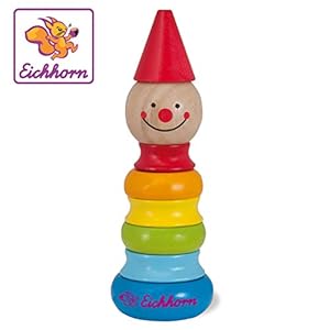 Eichhorn 100005055 – Steckfigur, Kasper, 5 Ringe mit Steckkopf und Hut, 17,5cm, 8-tlg., 100% Birkenholz Bunt