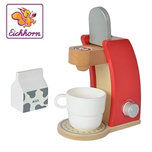 Eichhorn 100002489 – Kaffeemaschine aus Holz, inkl. Tasse, Milchbox und 1x Kaffeepad, 4-tlg., 12×18,5×20,5cm, Birkenholz