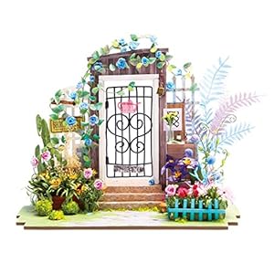 DIY Haus Bausatz Basteln Miniatur Puppenhaus Dekoration Kreative Geschenkidee mit LED Licht Bunt (Gartetor)
