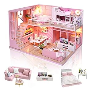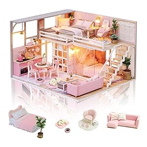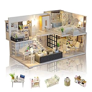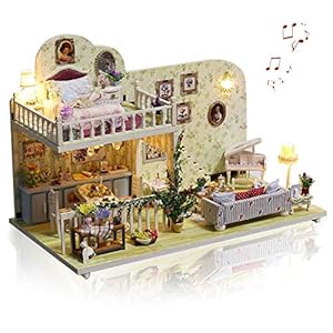 GuDoQi DIY Hölzernes Puppenhaus Kit, Miniatur Puppenhaus mit Möbeln und Musik, Handgefertigte Mini Haus Kit für…