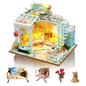 GuDoQi DIY Puppenhaus Miniatur Kit, 3D Hölzernes Puppenhaus Bausatz mit Möbeln und Musik, Handgefertigte Modellbausätze…