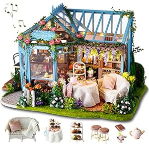 GuDoQi DIY Hölzernes Puppenhaus Kit, Miniatur Puppenhaus mit Möbeln und Musik, Handgefertigte Mini Haus Kit, Traum Engel