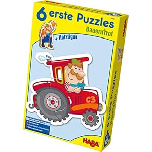Haba 3900 – 6 Erste Puzzles Bauernhof, Puzzle mit 6 niedlichen Bauernhofmotiven für Kinder ab 2 Jahren, mit Holzfigur…