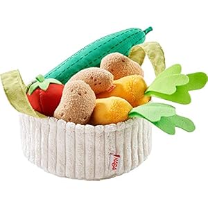 HABA 304230 – Gemüsekorb, Zubehör für Kaufladen und Kinderküche, Korb mit Gurke, Tomate, Karotten und Kartoffeln aus Stoff, Spielzeug ab 3 Jahren
