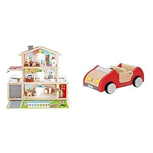 Hape E3405 – Puppen-Villa, Puppenhaus mit Zubehör, aus Holz & E3475 – Puppenhaus Zubehör Familienauto