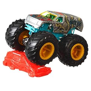 Hot Wheels Monster Trucks, abgefahrene Die-Cast-Fahrzeugen im Maßstab 1:64, mit riesigen Rädern und Bonus-Accessoire, Sammelspaß für ultimative Crashs, Design kann variieren, FYJ44