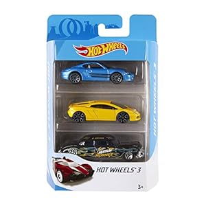 Hot Wheels K5904 – 3er Geschenkset 1:64 Die-Cast Fahrzeuge sortiert, Autobahnen/Zubehör, Spielzeug ab 3 Jahren