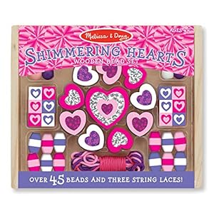 Melissa & Doug Holzperlen Set Funkelnde Herzen | Holzperlen zum Auffädeln | Kinder Modeschmuck- Armband | Bastelset Geschenk für Kinder ab 4 Jahren | Halsketten Bastelset für Mädchen oder Jungen |, Mittel