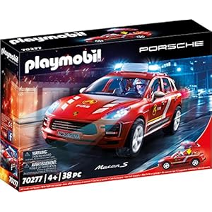 PLAYMOBIL Porsche 70277 Porsche Macan S Feuerwehr mit Licht- und Soundeffekten, Ab 4 Jahren