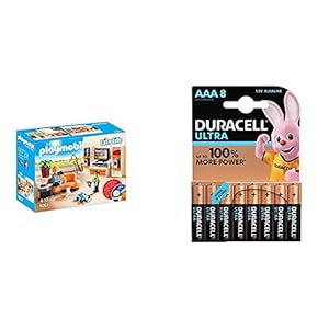 Playmobil City Life 9267 Wohnzimmer, Mit Lichteffekten, Ab 4 Jahren + Duracell Ultra AAA Micro Alkaline Batterien LR03…