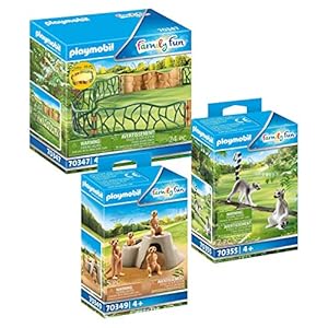 PLAYMOBIL® Set für Zoo 70341 3-teilig: 70347 Erlebnis-Zoogehege + 70349 Erdmännchenkolonie + 70355 Kattas