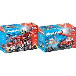 PLAYMOBIL 9464 Spielzeug-Feuerwehr-Rüstfahrzeug & 9465 Spielzeug-Feuerwehr-Teleskoplader