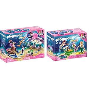 Playmobil Magic 70095 Nachtlicht Perlenmuschel, Ab 4 Jahren & 70100 Magic Familie mit Muschelkinderwagen, bunt