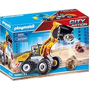 PLAYMOBIL City Action 70445 Construction Front End Loader with Movable Bucket with handle for moving and fixing the shovel, Toy for Children Ages 5+