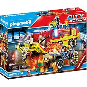PLAYMOBIL City Action 70557 Feuerwehreinsatz mit Löschfahrzeug, Inkl. Licht- und Soundeffekt, Für Kinder von 4-10 Jahren