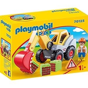 PLAYMOBIL 1.2.3. 70125 Schaufelbagger mit Anhängerkupplung, Empfohlen ab 1,5 Jahren