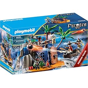 PLAYMOBIL Pirates 70556 Pirateninsel mit Schatzversteck und schwimmfähigem Boot, Für Kinder von 4 – 10 Jahren