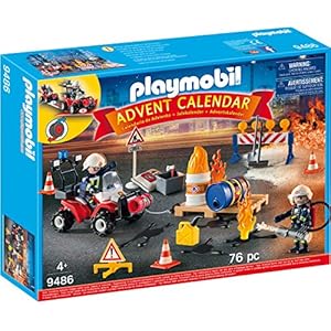 PLAYMOBIL Adventskalender 2021 – 9486 Feuerwehreinsatz auf der Baustelle, Ab 4 Jahren [Exklusiv bei Amazon]