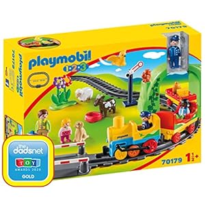 PLAYMOBIL 1.2.3 70179 Meine erste Eisenbahn mit Tunnel, Schienen und 3 Waggons zum Verbinden, ab 1,5 Jahren