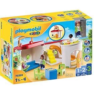PLAYMOBIL 1.2.3 70399 Mein Mitnehm-Kindergarten mit Schaukel, Karussell und Rutsche, mit Tragegriff zum Zuklappen und Mitnehmen, ab 1 Jahr