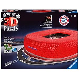 Ravensburger 3D Puzzle 12530 – Allianz Arena Night Edition – FC Bayern München Fanartikel – leuchtet im Dunkeln – Geschenkidee für Bayern-Fans ab 8 Jahren, Fußball Geschenke Jungen und Mädchen
